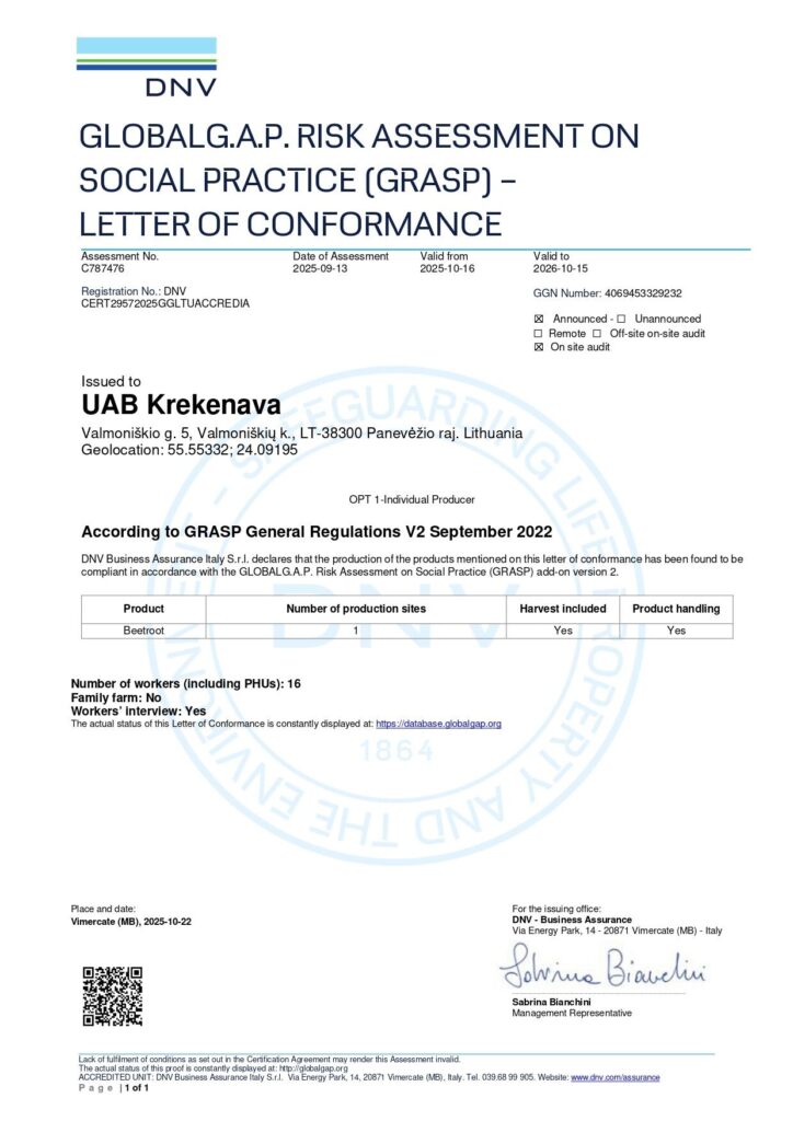 Praėję metai žemės ūkiui buvo kupini iššūkių – tiek dėl permainingų orų, tiek dėl rinkos svyravimų. Nepaisant sudėtingos situacijos, KREKENAVA šiemet gavo GLOBALG.A.P. sertifikatą, patvirtinantį, kad žemės ūkio veikla vykdoma atsakinga ir tvaria kryptimi.