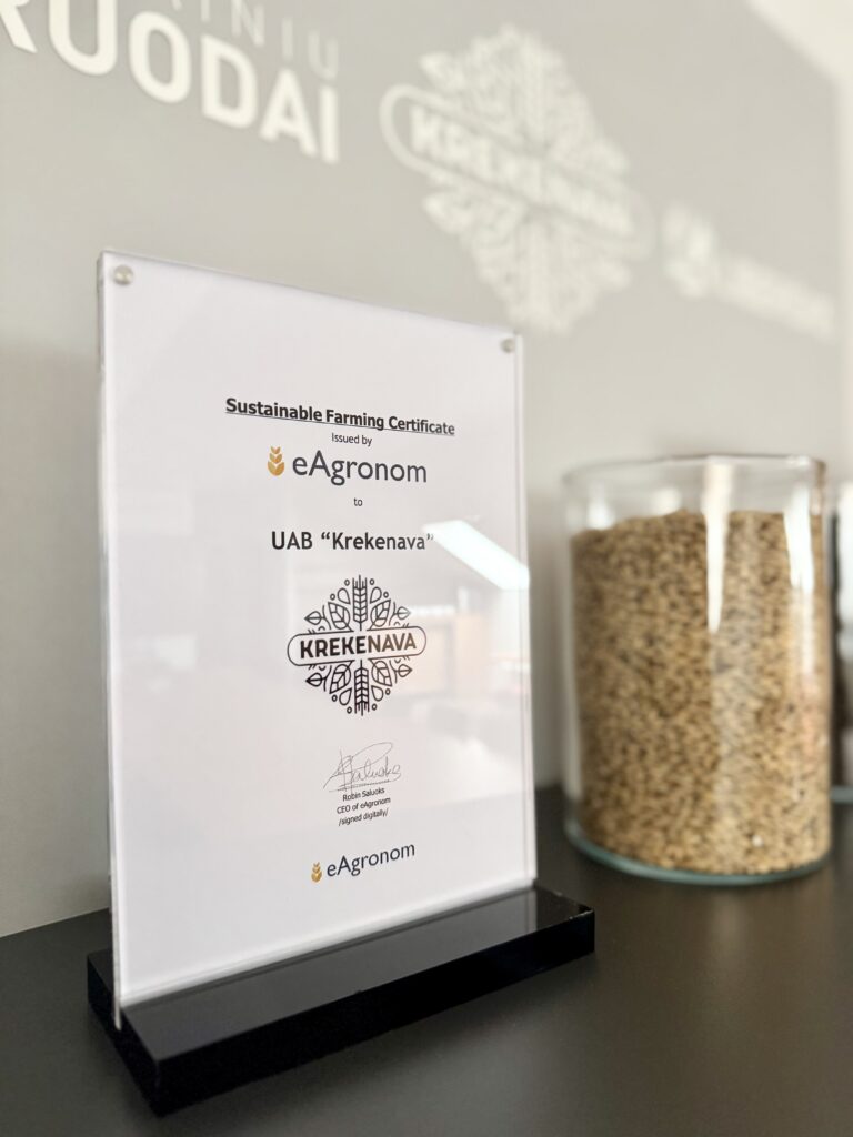 UAB „Krekenava” pelnė „Sustainable Farming” sertifikatą iš „eAgronom” – tai reikšmingas žingsnis tvarios žemės ūkio plėtros kryptimi. Šis pripažinimas patvirtina įmonės atsakingą požiūrį į gamtos išteklius ir modernų ūkininkavimą. Sertifikatas įvertina tvaraus žemdirbystės procesus, kurie derina aukštą produktyvumą su aplinkosaugos reikalavimais. UAB „Krekenava” užsiima įvairių žemės ūkio kultūrų auginimu, tiekdama kokybiškų žaliavų „Vikonda grupės” gamybos įmonėms. Šiemet įmonės laukuose auga žieminiai ir vasariniai kviečiai, rapsai, miežiai, burokėliai, cukriniai runkeliai, kukurūzai ir sojos pupelės. Sustainable Farming sertifikatas stiprina mūsų įsipareigojimą tvarumui visoje gamybos grandinėje – nuo lauko iki galutinio produkto. Tai dar vienas „Vikonda grupės” žingsnis link atsakingo verslo, kuris rūpinasi ateities kartomis ir aplinkos išsaugojimu.
